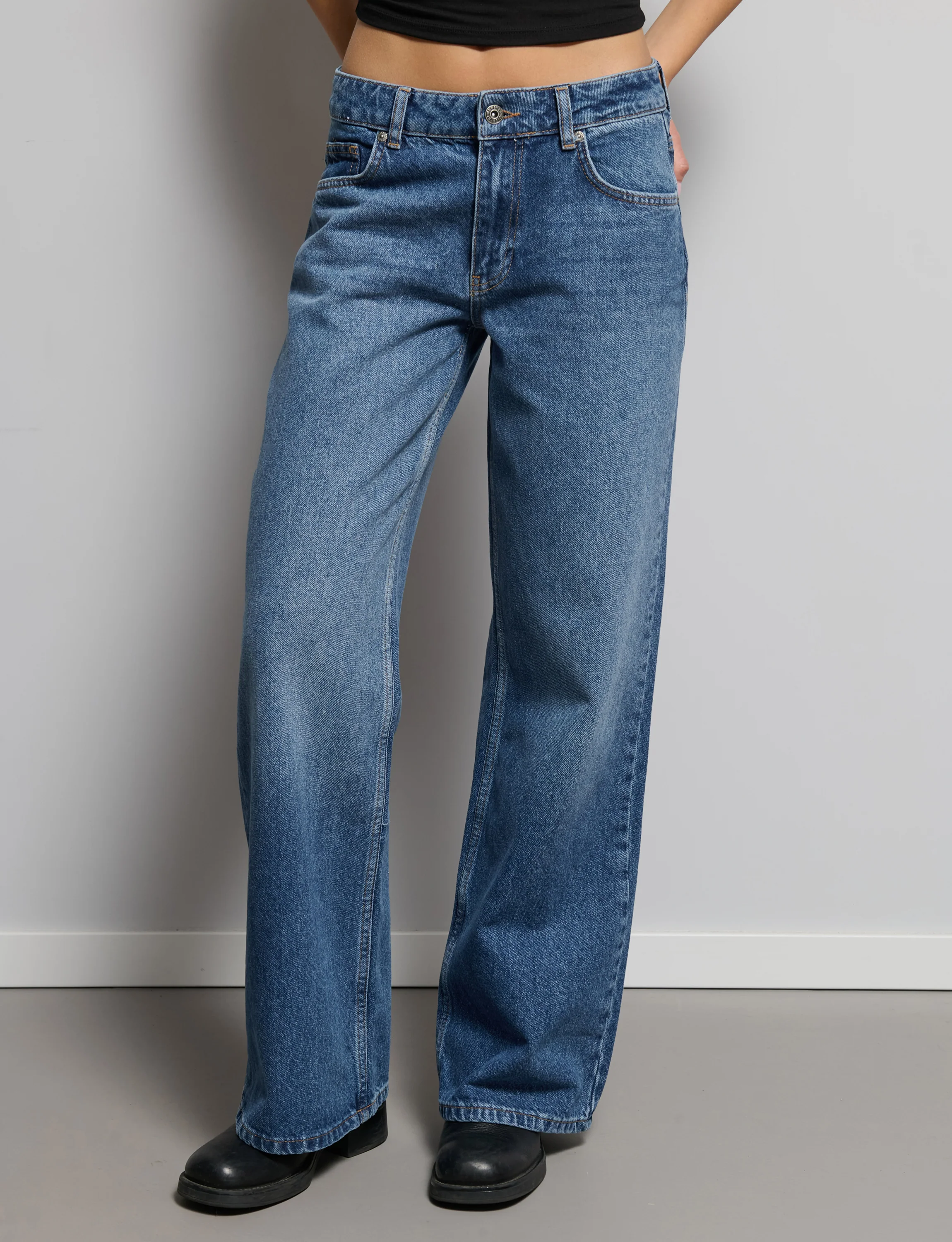 Jeans gamba dritta e vita regolare con scritta strass dietro Composizione: 100% Cotone